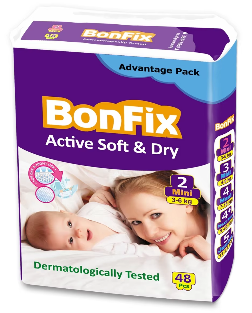 Bonfix Quality Baby Diaper Cloth 3-6kg 72Pcs/Pk