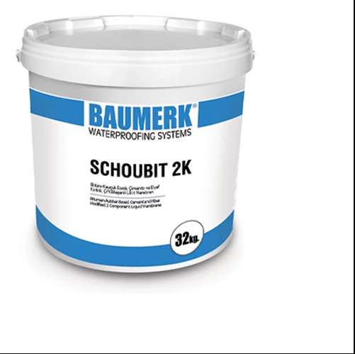 Description SCHOUBIT 2K is a two component, bitumen-rubber based and reinforced with fiber and elastomeric resins, elastic and quick dry liquid membrane. By evaporation of water it contains, it adheres firmly to the applied surface and forms an elastic waterproof layer. Fields of Application In all horizontal and vertical applications, building base, underground storehouses and basements insulation and for insulating water leakages in wet areas such as bathroom, kitchen, balcony, toilets. For the applications that required higher durability against water pressure or on cracked surface, it can be reinforced with fiber glass, polyester felt, reinforcing fabric etc. Features and Benefits Applied as cold. Does not require heating or thinning. Ready to use. Provides a seamless insulation layer. Suitable for interior applications because of non-toxic and non-flammable content. Water based. Environment friendly. Adheres perfectly to all kind of surfaces, even when the surface is moist. Covers the capillary cracks. Provides permanent elasticity. Technical Data Content Color Density of Mixture Solid Content of Mixture Carbon dioxide Permeability Water Vapor Permeability Capillary Water Permeability Adhesion Strength Application Temperature Drying Time Touch dry Full curing Mechanical strength HS Code Liquid part : Elastomeric polymer content bitumen emulsion Powder part : Fiber reinforcement cement mixture Liquid form is dark green, dry form is black 1,20 g/cm3 63% 299,68 m 14,293 m 0,014 kg/m2.h0,5 0,7 N/mm2 +5°C to +35°C 1 hour 5-6 hours 8 days 2715.00.00.00.00 Preparation of Substrate Preparation of Substrate Application surface must be dry, clean and clean off materials which prevent bonding, such as dust, oil, rust and remove loose pieces. Sharp tips and horizontal/vertical joints which are suitable cracking should be chamfered with PH 55 or REPAMERK 1. Big pores and cracks should be filled with REPAMERK 301 repair mortar. To ensure strong adherence, avoid dust, and improve durability, non-metallic surfaces must be undercoated with B PR 101, and metallic surfaces must be undercoated with B PR 102. Application Method SCHOUBIT 2K is cold applicable. Powder B component in the bag is poured into liquid A component under low speed mixer, they are mixed together until there remains no lump, getting homogenous mixture. After they are mixed, it is applied with a bitumen brush or trowel. Depending on the weather conditions, it dries approximately in 1 - 2 hours. It can be applied on damp surfaces, but not on wet surfaces. It should not be applied under the rain or when the temperature lower than +5°C. Next layer should be applied when the previous layer completely dry. Consumption 3,0 – 5,0 kg/m2 for two layers. Packaging 24 kg bitumen emulsion + 8 kg powder = 32 kg as a set Shelf Life 12 months in original, unopened package. Storage Store in dry area between +5°C and +35°C. Protect from heat, freezing and direct sunlight. Cleanup Information Clean tools and equipment with water immediately after use. Dried material can only be removed with industrial type solvents or/and mechanically.