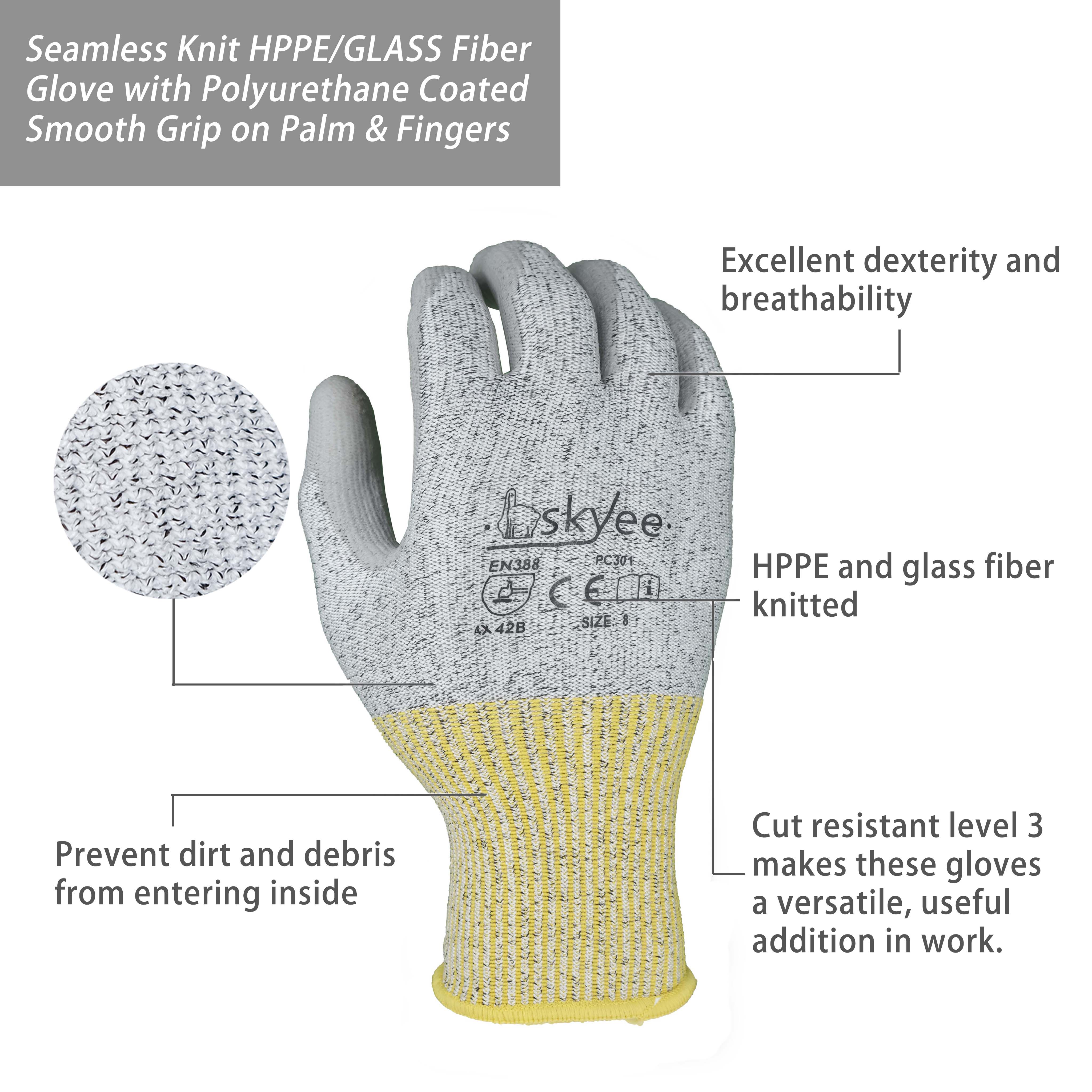 SKYEE esnek HPPE elyaf PU daldırma kesim dayanıklı emniyet eldiveni kesim 5 inşaat için